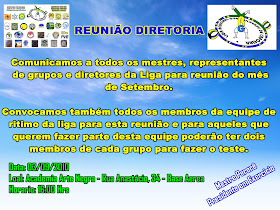 A reunião acontecerá na sede da Arte Negra as 16:00 hras do dia 03/09 com a presidencia do Mestre Pererê.